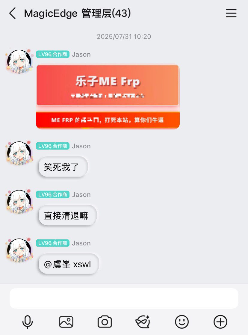 两位 ME Frp 赞助者,我们就简称 小Z 和 小Y 吧,因干了些神人事被清退而心怀不满,其中我们的小Y 对着小Z 说了一句