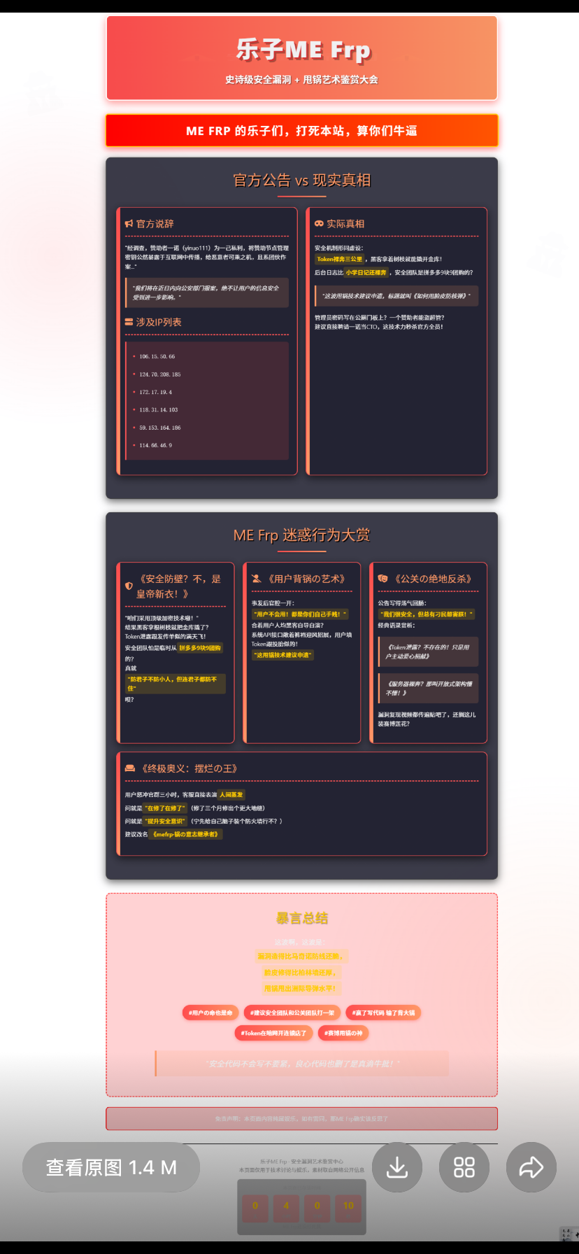 虽然这确实个大漏洞,但应该是发送邮箱解释这个问题,而不是在那边乱传播,这样反而违法。我寻思我看的不是熊出没啊,哪来的吉吉啊