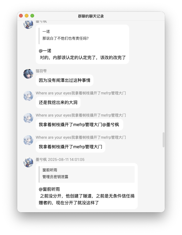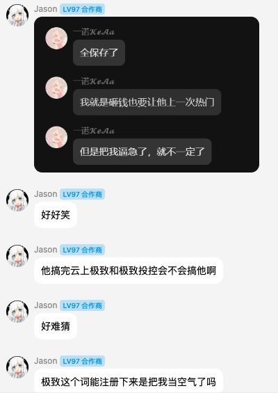 而且不仅仅要开落雪的,还想要开 ME Frp 其中一位开发者的,看来还吃不够